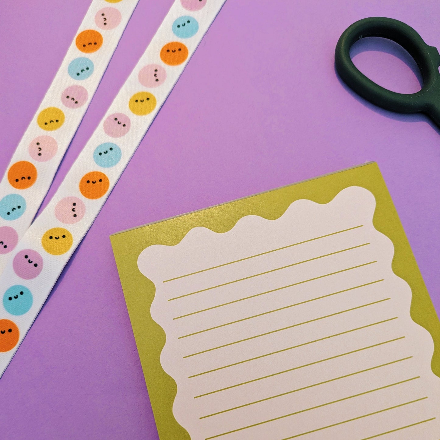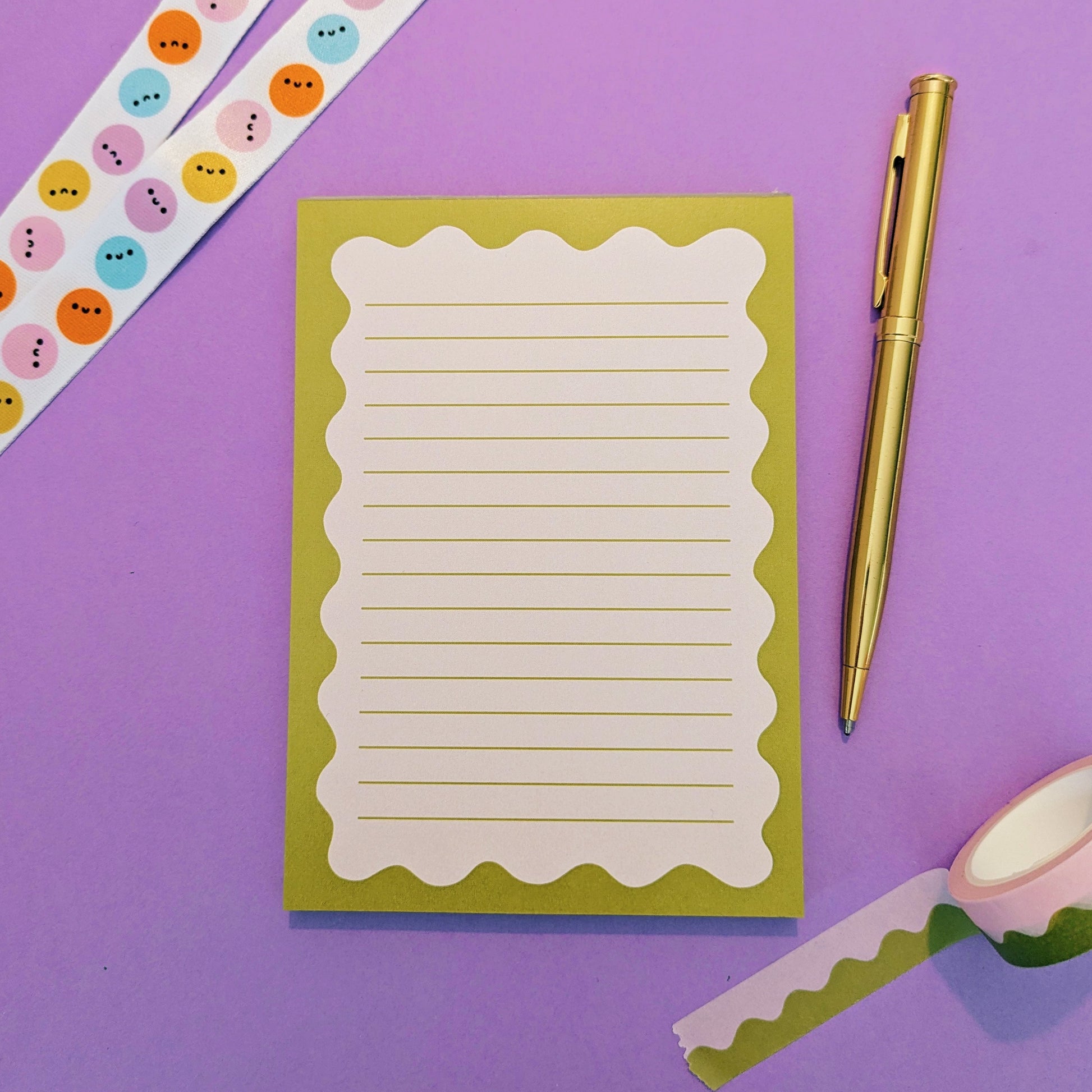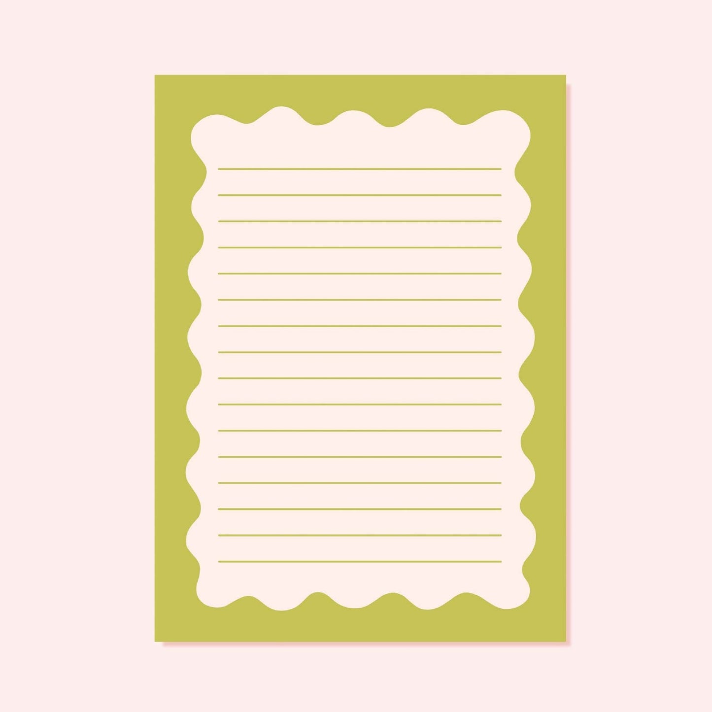 Introducing your trusty sidekick for jotting down ideas, secret recipes or a manic shopping list as you rush out of the house. With a gorgeous sage wiggle border, this notepad is bound to brighten up your desk and add a pop of colour to your stationery set.
