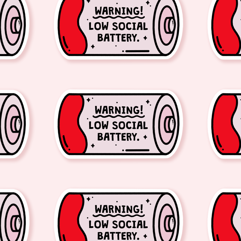 We get it, sometimes your social battery is low and all you have time for is laying on the sofa with snacks and a movie. No contact from the outside is needed or wanted! That's why we created the perfect sticker for when you're running low on fumes.