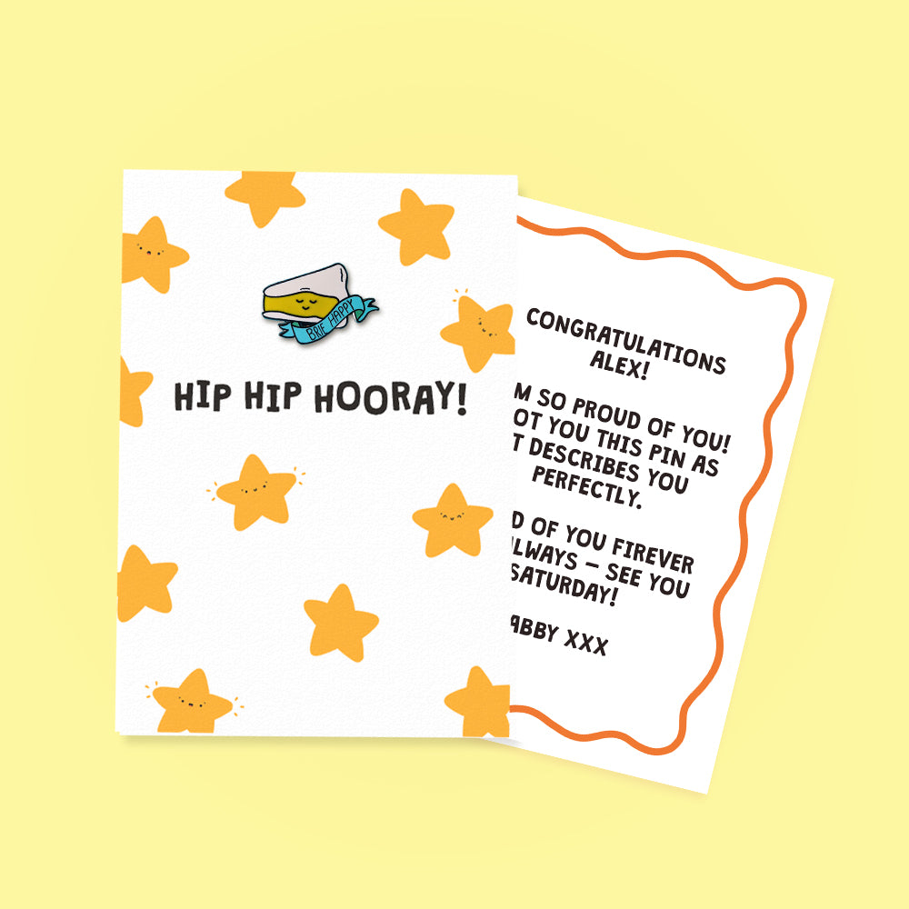 Let that special someone know that you love them with this Enamel Pin Badge Greetings Card. Whether that's a partner, a parent, your bestie or a grandparent - who doesn't love a cute Enamel Pin on a card? What’s so special about this card? You can add your choice of Enamel Pin so that you can send a card and a gift in one! Enamel Pins are amazing little gifts to send to a loved one to pop on their backpack, lanyard or display in their home.