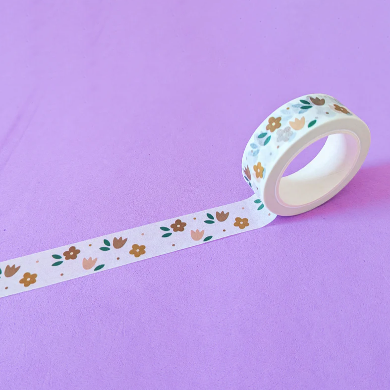 Beautiful, simplistic floral washi tape. A lovely design of washi tape, perfect for use in journals, packaging or around your house as a cute piece of décor.