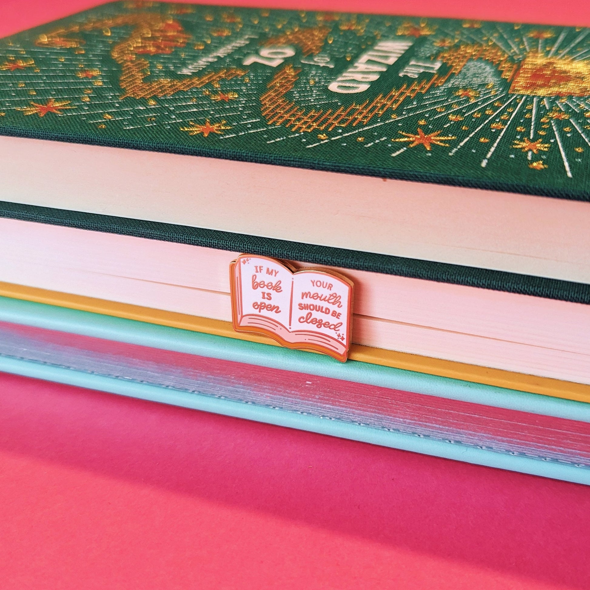 Our book enamel pin is the ultimate gift for your fellow book lovers and avid readers who enjoy reading in complete silence - bliss!